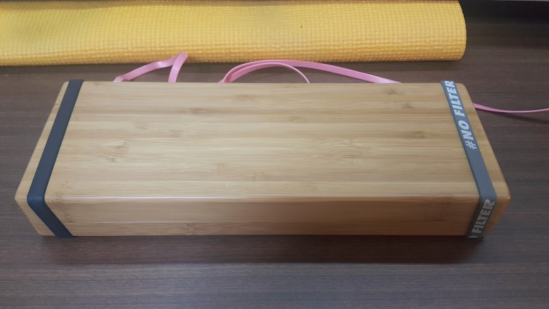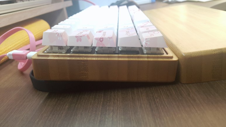 고무 팔지를 하단에 넣어서 경사를 만들어서 사용하고 있습니다. 들고 다니기 편하게 하자는 컨셉이라서 타건감을 약간 희생하고 사용하고 있습니다.